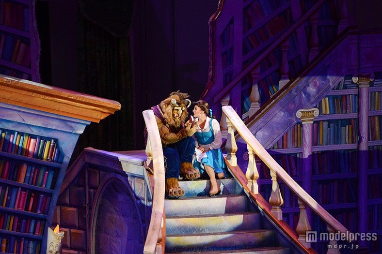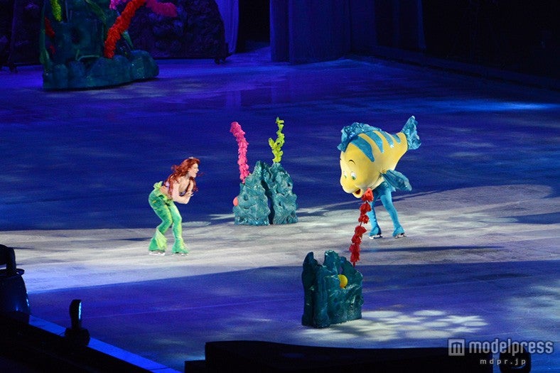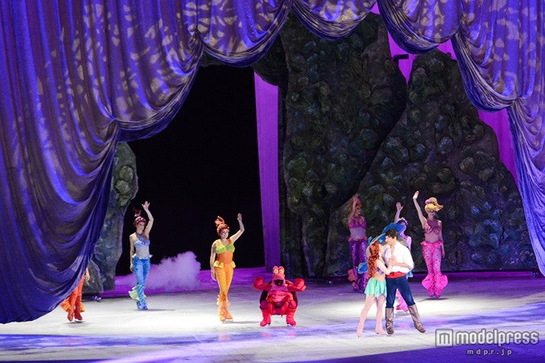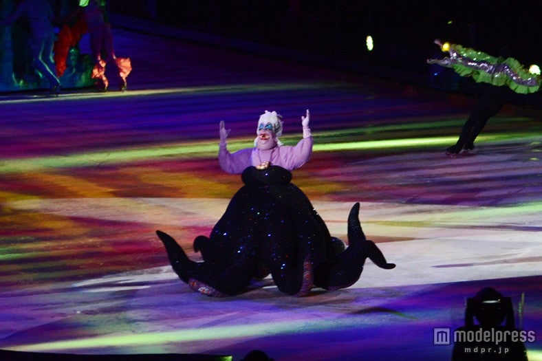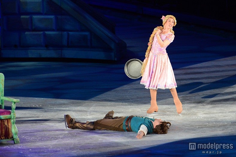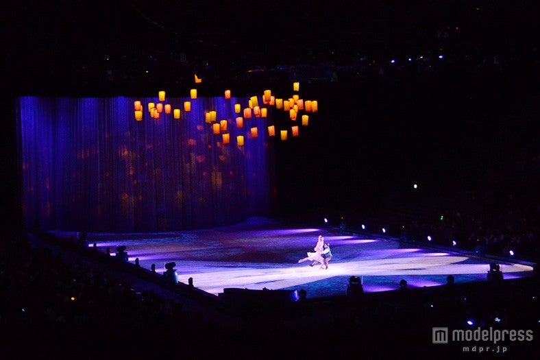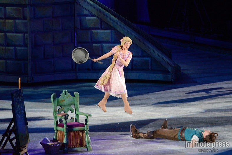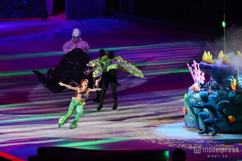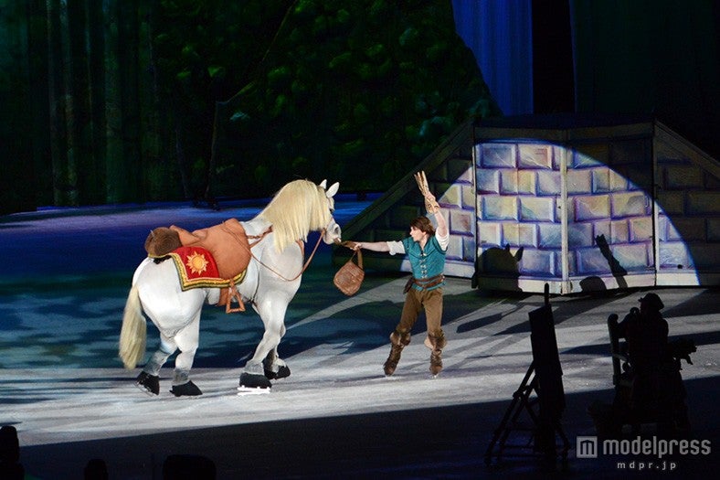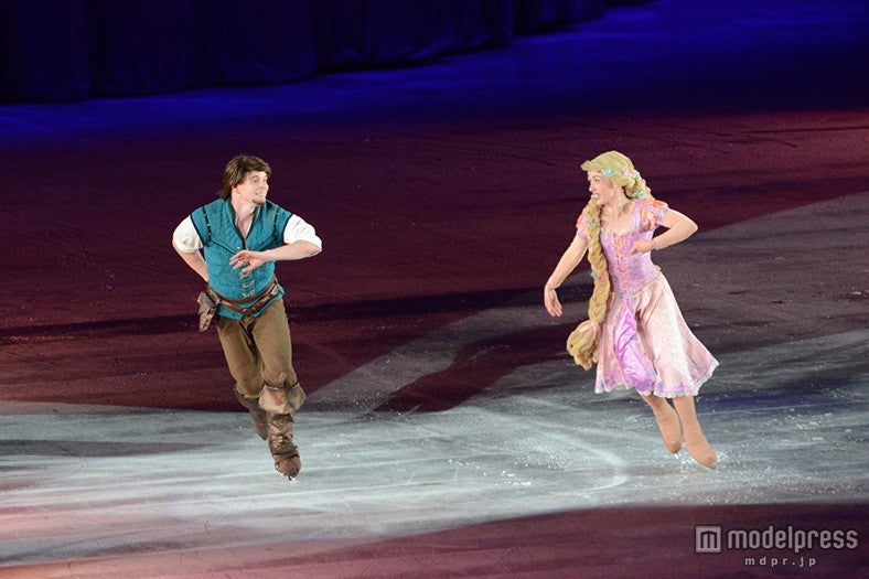 このほかにも、「リトルマーメイド」のシーンでは、海底の世界から飛び出したアリエルは空中で華麗なるアクロバット“エアリアル”を披露。「美女と野獣」のシーンでは、城の家来たちがゆかいな晩餐会、「塔の上のラプンツェル」のシーンでは、ラプンツェルとフリンが塔から抜けだしてラプンツェルが外の世界に出て行く場面を再現した。