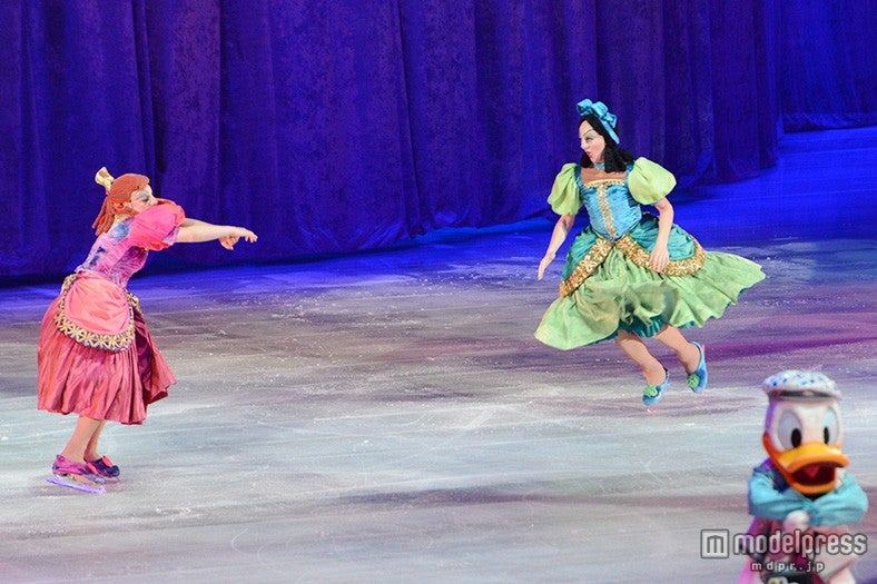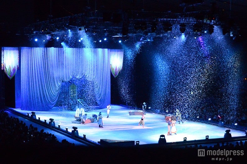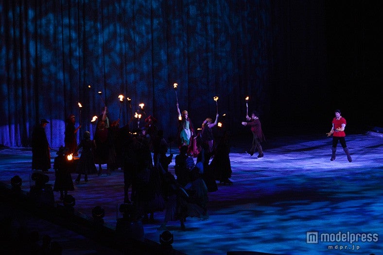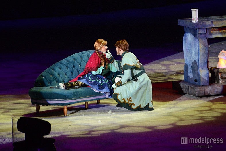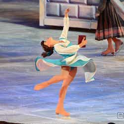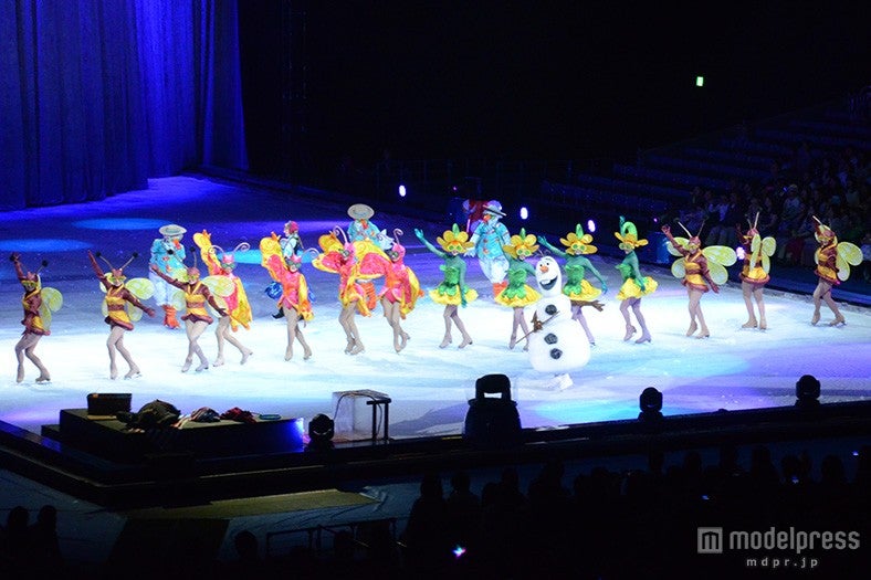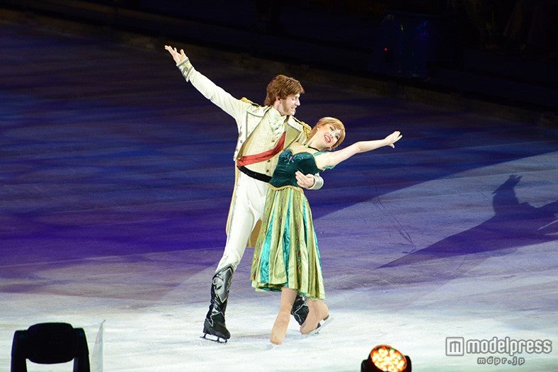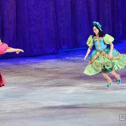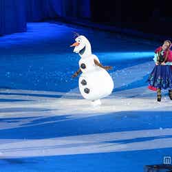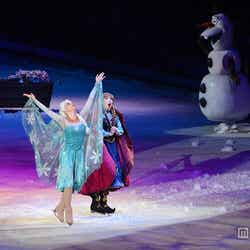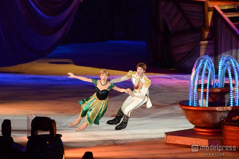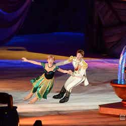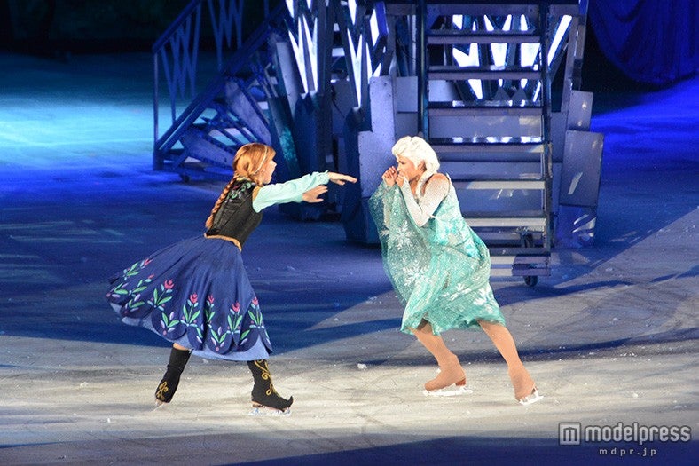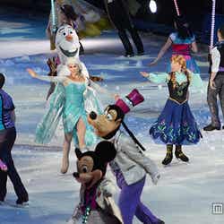 初披露された「アナと雪の女王」のシーンでは、リンク上に雪が舞い、アレンデール王国を再現。「アナ雪」のステージが始まると観客からは歓声の声が上がった。「Let It Go~ありのままで~」をはじめ「生まれてはじめて」「とびら開けて」「あこがれの夏」など数々の名曲にのせて、アナとエルサが観客を映画の世界へ引き込んだ。