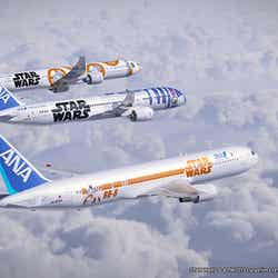 これにより、すでに公開している「R2-D2 ANA JET」(ボーイング787-9型機)と合わせて3種類のデザインとなる。