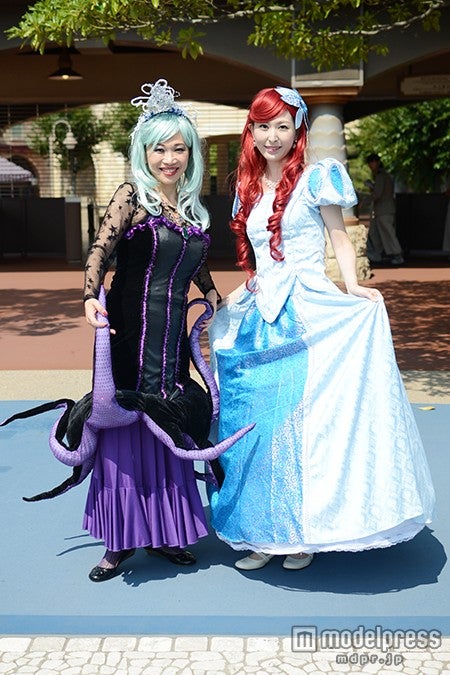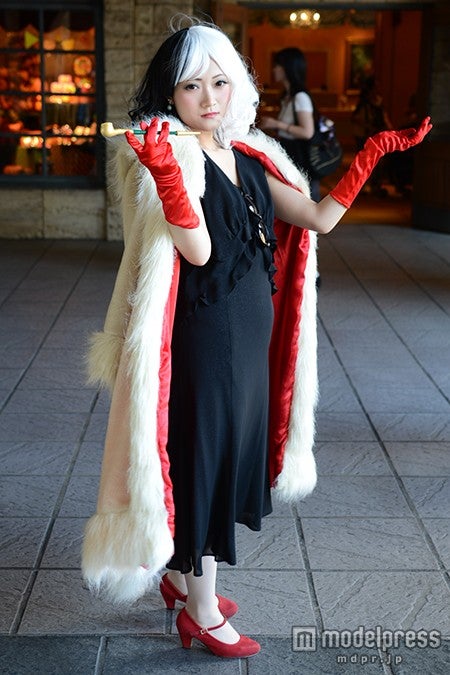 今年のディズニーシーは、ディズニーヴィランズが主役の新しいハーバーショー「ザ・ヴィランズ・ワールド」を公演するほか、ヴィランズをイメージしたフードやグッズ、デコレーションが新登場。それに伴い、ヴィランズの仮装をしたゲストが多数見受けられた。中でも、ディズニーシーに縁の深い「リトル・マーメイド」の海の魔女アースラ、「101匹わんちゃん」の非情の女クルエラ・ド・ビルが特に人気。