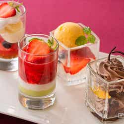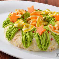 また、フードはクリスマスをイメージした盛り付けのメニューがずらり。レストラン「クリスタルパレス・レストラン」では、海老とちりめん山椒のちらし寿司、チキンとポテトのサラダ、ストロベリークリームのタルトなどバラエティ豊かな料理をブッフェスタイルで楽しめる。
