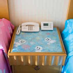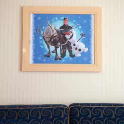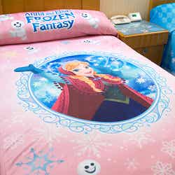 今年1月、東京ディズニーランドホテルに初登場し、好評だった“アナとエルサのフローズンファンタジー”スペシャルルーム。今回登場するディズニーアンバサダーホテルでは、装いも新たに。映画の世界観を感じられる雰囲気はそのままに、ベッドスプレッド(ベッド全体を覆うカバー)やテレビ台に飾られるオブジェに、アナやエルサ、オラフたちが描かれ、個性豊かなキャラクターたちに囲まれながらの滞在を楽しむことができる。