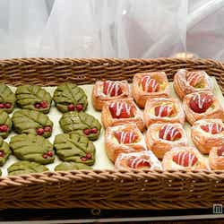 例えば、いちご1個がまるごと入った「ストロベリーデニッシュ」、ピスタチオと抹茶パウダーが練りこまれている「ツリーブレッド」の中には、甘酸っぱいラズベリークリームがたっぷり。