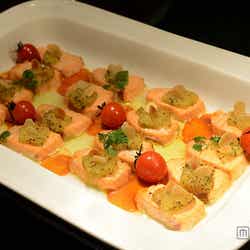 例えば、キヌアのプチプチした食感が特徴の「スモークサーモンとキヌアのサラダ」、さっぱりした味付けが嬉しい「ポークと野菜ナムルのサラダ」、口に入れると濃厚な味が広がる「マッシュルームのムース」など色とりどりのメニュー。