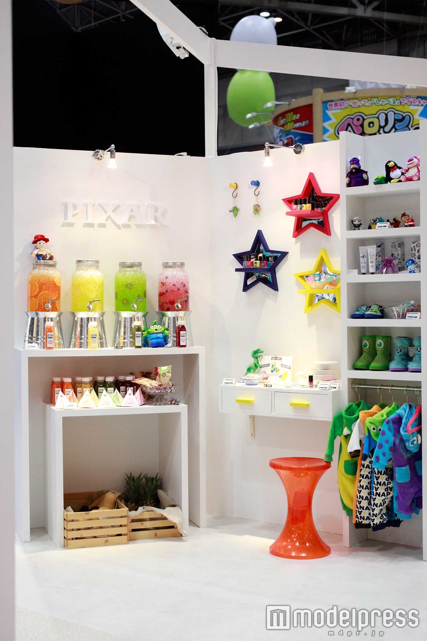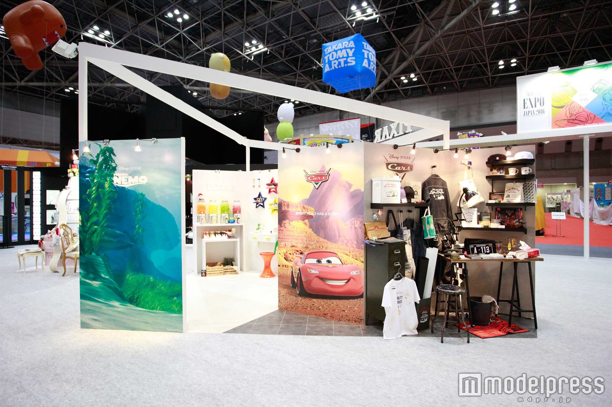 今年30周年をを迎えるピクサーは「トイ・ストーリー」「モンスターズ・インク」「カーズ」はもちろん、最新作の『アーロと少年』、『ファイン ディング・ドリー』の商品が壁を彩る。レーサーの部屋をイメージした『カーズ』のブースや海の中をイメージした『ファインディング・ニモ』など映画のイメージにそってブースがデザインされている。
