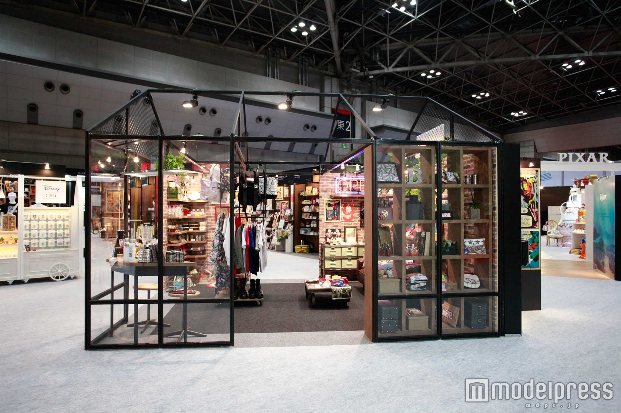ニューヨークのロフトをイメージしたレンガや黒いアイアンをアクセントに、ディスプレイされている。