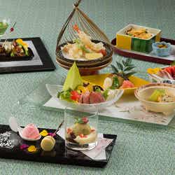 ディズニーアンバサダーホテル「花 Hana」(日本料理)では、鰆の柚庵焼きや筍ご飯や海老と野菜の天婦羅など本格的な会席料理全9品が並ぶランチメニュー“花絵巻”が初登場。ラヴィゴットソースとともに味合うスモークしたマグロ頬肉のグリルや、バスケットのような見た目のスペシャルサンデーなど、春の陽気な気分にぴったりな“エンパイアランチ”は「エンパイア・グリル」(カリフォルニア料理)で堪能できる。なお、2つのレストランでは、数量限定のオリジナルピン付のスペシャルディナーメニューも販売する。