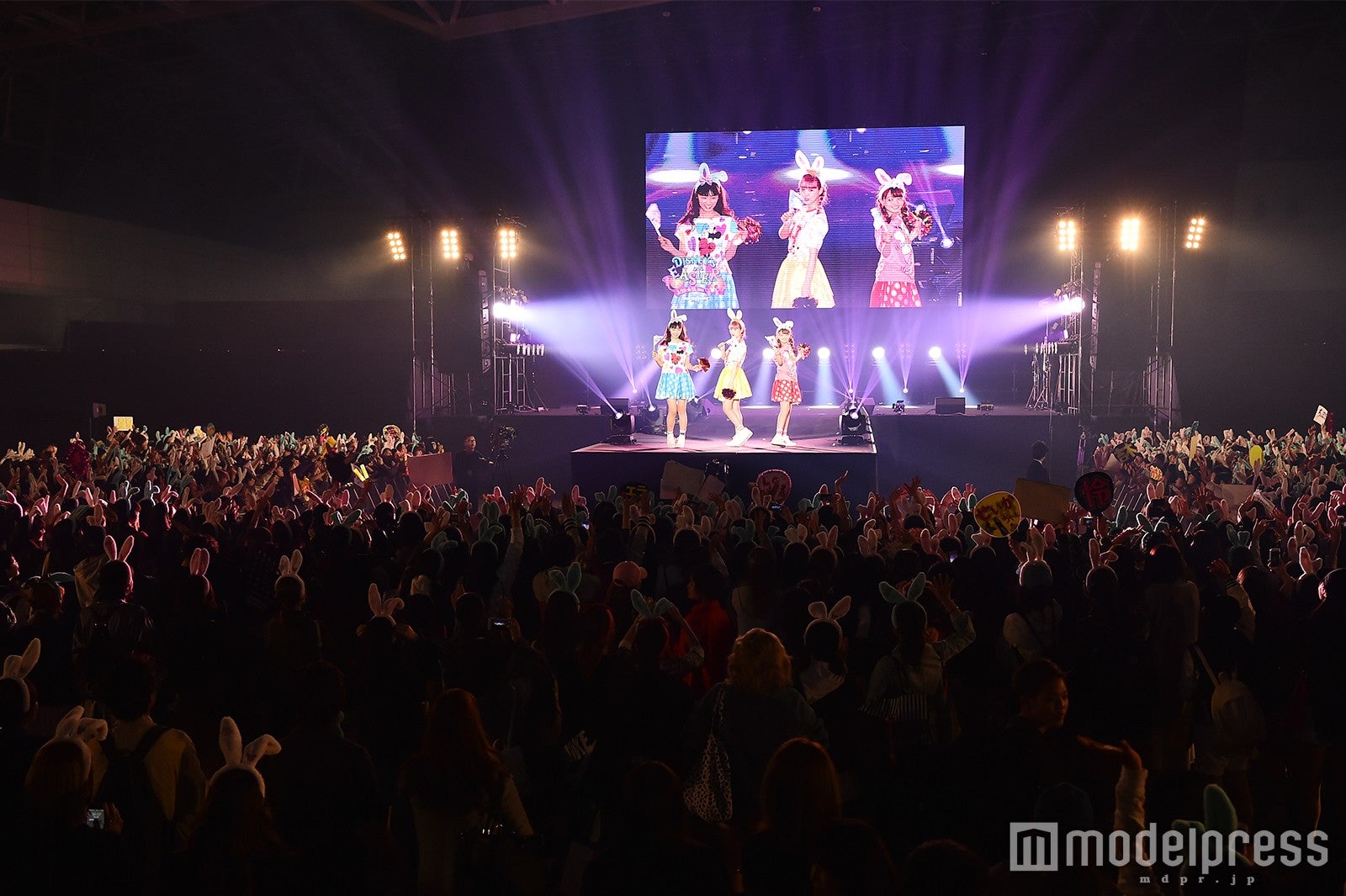 会場に集まった約1万人の観客には、ディズニーランドのイベントグッズとして登場しているうさみみカチューシャを配布。うさみみを付けた観客の前に「みんなもうさみみを付けて一緒に盛り上がろう~!」というにこるんの呼びかけと共に、うさみみを付けたモデルたちがステージに登場。ステージでは、「春の東京ディズニーランドを楽しむ」をイメージして、元気でカジュアルなうさみみコーディネート、女の子らしくふんわりガーリーなうさみみコーディネート、カップルで楽しむうさみみコーディネートを紹介した。