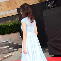 朝比奈は胸元がざっくり開いたターコイズブルーのドレスで美肌を披露。抜群のスタイルが際立つドレススタイルでレッドカーペットを闊歩した。中田は赤の女王風のヘアスタイルに、白と黒を基調にしたミニワンピでワンダーランドの住人に変身した。