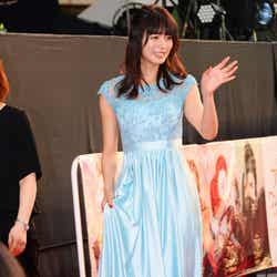 池田はアイスブルーのロングドレスをエレガントに着こなし。全体にラメを散りばめ、胸元は素肌が透けるセクシーなアリスカラードレス。優雅なオーラを振りまき、会場を魅了した。ぺこは、フリルたっぷりの襟付き水色ワンピースに白タイツ、黒のリボンをあわせてアリスになりきり。スカートを揺らしながら笑顔いっぱいファンの声援に応えていた。