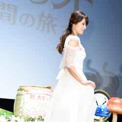 女優の深田恭子が10日、都内にて開催された映画「アリス・イン・ワンダーランド/時間の旅」(公開中)の大ヒット舞台挨拶に、純白のプリンセスドレススタイルで登壇。日本語吹替え版の声優を担当した「白の女王」は「赤の女王」の妹となるが、私生活では6つ歳の離れた妹がいる深田は「妹に何かあったときに一緒に『お姉ちゃんも悪い』という風に連帯責任として怒られるということがありました」と述懐。「今回の映画はそういった部分で共感しました。『妹って、ずるい!』と思うようなこともあったので」と笑顔を見せた。