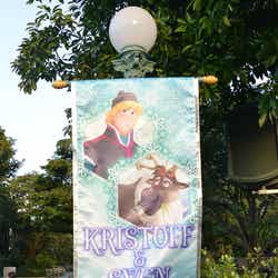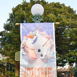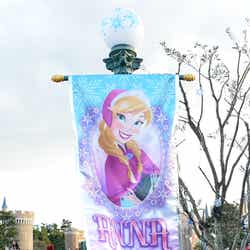 エントランスやワールドバザール、そしてパーク内もデコレーションが施され「アナ雪」一色に。シンデレラ城前広場には、スケートを楽しむアナとエルサ、雪遊びをするオラフなどのフォトロケーションが初登場しているほか、パークの様々な場所に設置されたフラッグなど、フォトスポットがいっぱい。