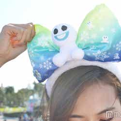 さわり心地抜群のスノーギースのクッション、高さ40cm超えのアナとエルサのぬいぐるみなど、限定グッズもずらり。まずチェックしたいカチューシャは、スノーギース×リボン。そして、ファッション用グラスもスノーギースと、スノーギース好き待望のアイテムが揃っている。