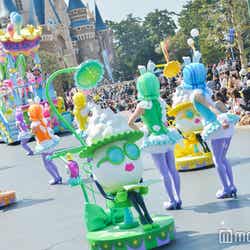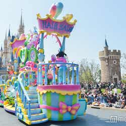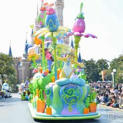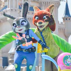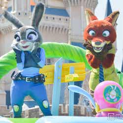 7台のフロートを中心に、大小様々なカートが連なるパレードは、途中3ヶ所で停止。ディズニー映画『ズートピア』のジュディ・ホップスとニック・ワイルドも東京ディズニーリゾートに初めて登場し、ゲストと一緒に“うさたま”を探して捕まえたり、逃げられたりを繰り返しながら、これまでとはちょっと違ったパレードを繰り広げた。