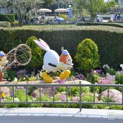 さらに、“うさたま”をデザインしたデコレーションがパークを彩り、賑やかな雰囲気。エントランスには、イースターエッグメーカーから次々と生み出された“うさたま”がパークへ逃げ出していく様子を表現したデコレーションを設置。プラザには、逃げ出した“うさたま”たちを捕まえようとしたり、“うさたま”と楽しくじゃれあっているディズニーの仲間たちのユーモアあふれるフォトロケーションが登場している。