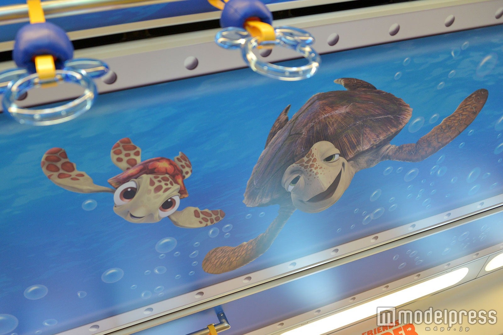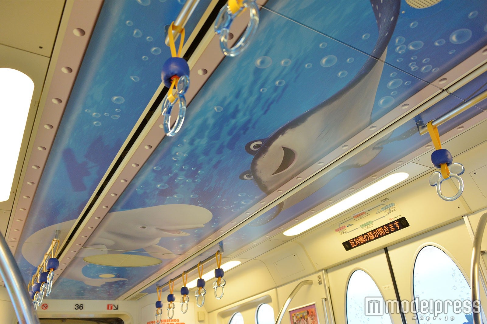 さらに、ディズニーリゾートラインも期間限定で「ニモ&フレンズ・ライナー」に。映画「ファインディング・ニモ」シリーズのキャラクターをデザインしたラッピング車両となっており、展望窓に見立てデザインされた窓や天井に注目。