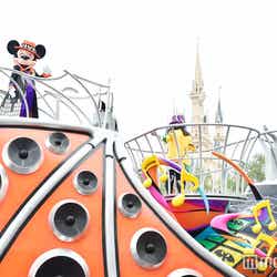 今年は音楽を一新し、ミッキーマウスやミニーマウスたちは新しいコスチュームを着用、さらにフェスティバルをより盛り上げるMCも新たに登場。パレードの主催者であるグーフィーを先頭に、かぼちゃや魔女などのハロウィーンらしい衣装に身を包んだディズニーの仲間たちと、おばけやスケルトンといったハロウィーンのエンターテイメントのスターたちが、ノリノリの音楽やダンスを披露する。