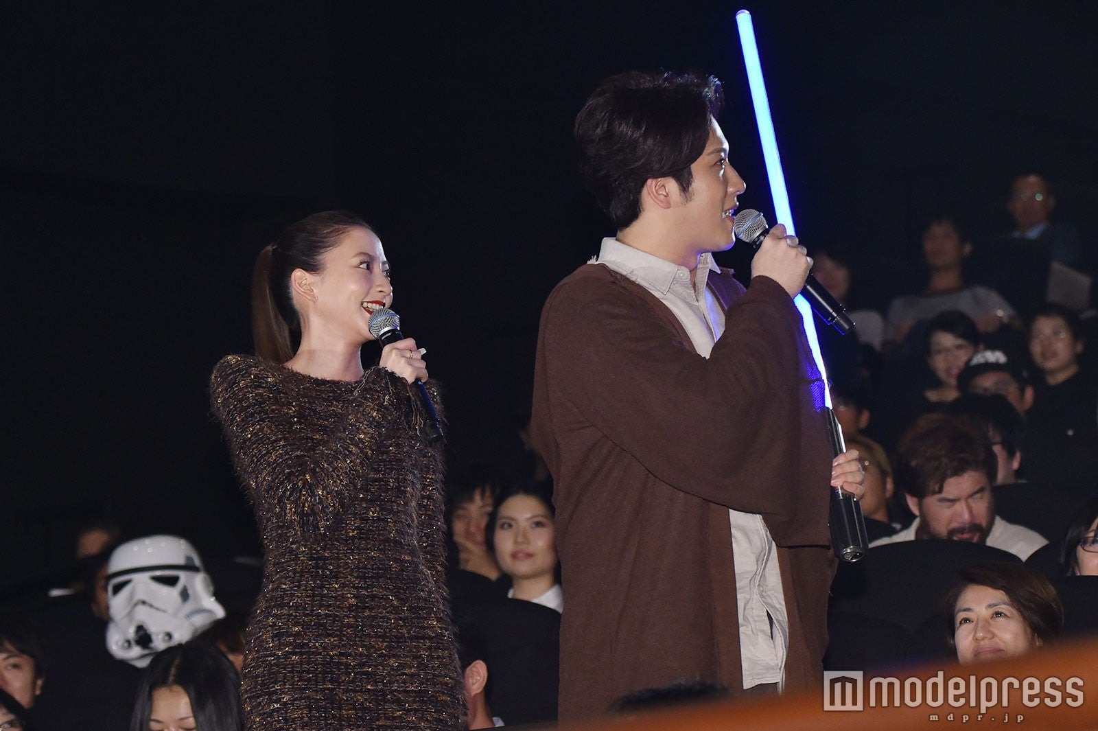 家族全員が『スター・ウォーズ』ファンと公言するなど、ファン代表として出席した河北は、『スター・ウォーズ』を好きになったきっかけを聞かれると「私はニューヨークで生まれ育ったんですけど、アメリカだと物心がつく前からずっと見ていて、その中でもプリンセス・レイア(・オーガナ)が女性としても1番好きで、ずっと憧れの女性です」と目を輝かせた。そんな河北は、ライアン監督に「毎作、魅力的なキャラクターが登場しますが、今回どのキャラクターがオススメですか?」と質問。これにライアン監督は「新しいキャラクターはどれも、早く皆さんに出会ってほしいとワクワクしているんですが、中でもローズというキャラクターで、演じるのはデビューして間もない新人の女優さんでケリー・マリー・トランさん。現場でも太陽の日差しのような方で、ファンの方にも早く会ってほしいと思っているキャラクターです」と答えると、河北は「同じ女性として楽しみですね。見てみたいです」と声を弾ませた。