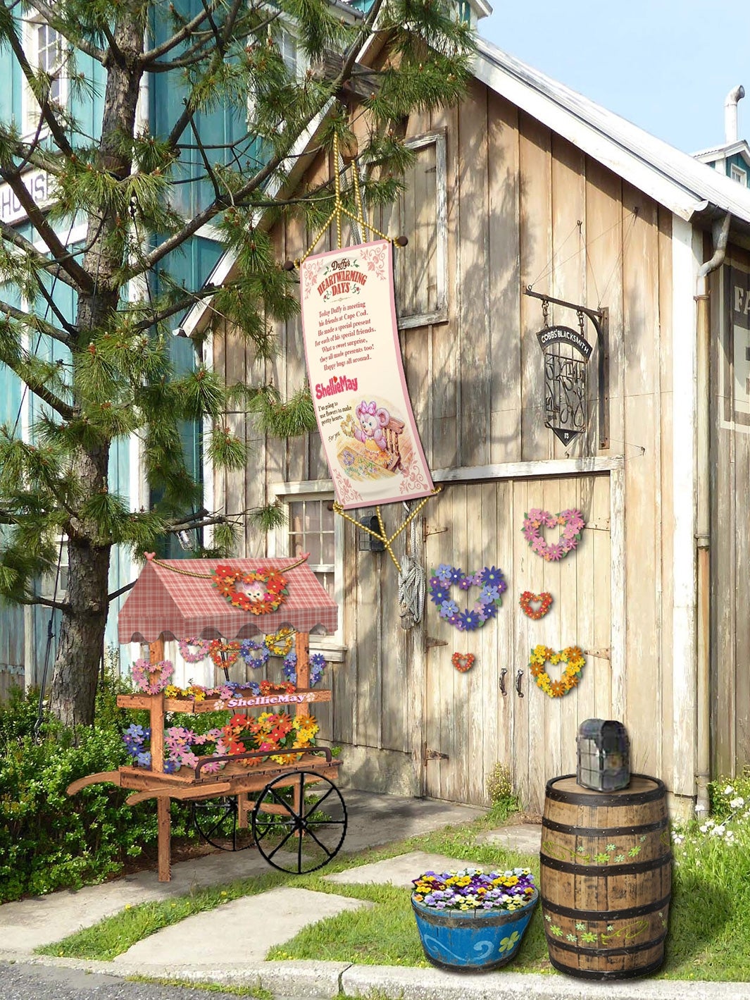 ケープコッド全体は、ダッフィー&フレンズの心あたたまる世界をテーマにデコレーション。「アーント・ペグズ・ヴィレッジストア」の前には、ダッフィーたちがお互いを想い合い、幸せな気持ちでハグをしているところが表現されたフォトロケーションが新しく登場し、ダッフィーたちを抱きしめて撮影することができる。