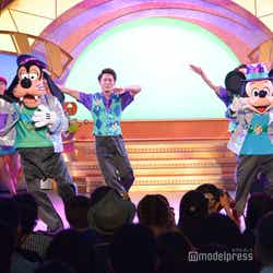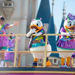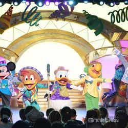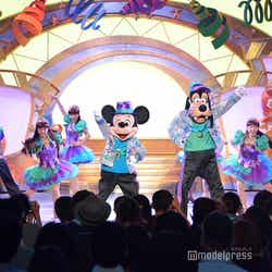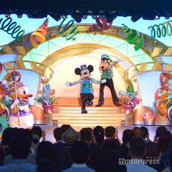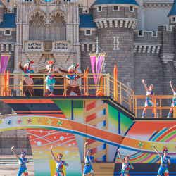 途中、ユーロビート調の「ミッキーマウスマーチ」で、ミッキーマウスがヒップホップ調のダンスを披露する場面も。そして、ゲストも“パーティグラ”のポーズや手拍子をしたり一緒に踊ったりするなどして参加。お祭りは会場全体で最高潮に盛り上がって、“Happiest”な“パーティグラ”のフィナーレを迎える。