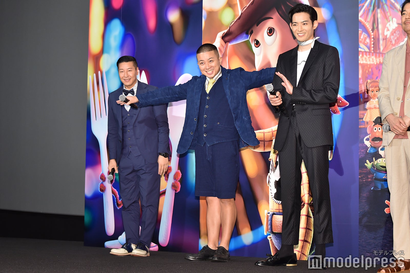 そして、『トイ・ストーリー』にちなみ、持ちネタ「T~!」や、IKKOのモノマネなどを連発して会場を盛り上げていたチョコレートプラネット。ウサギのぬいぐるみ・ダッキー役を松尾駿、アヒルのぬいぐるみ・バニー役を長田庄平がそれぞれ演じているが、長田は「このお話をいただいたときから、ずっとドッキリなんじゃないかなと思っていて。いつ『てってれ~!』ってカードが出てくるのかヒヤヒヤしていたんですけど」とドッキリを疑ったというほど。「本当に『トイ・ストーリー』のファミリーに入れて、昔から大好きな作品に参加できて、めちゃくちゃ嬉しいです。嬉しさが無限の彼方にいっています」とコメント。一方の松尾は「僕も竜星さんと一緒で、見た目でダッキーに受かったようなもの」と語って笑いを誘いながら、「間違いなく僕ら苦節14年、今までの仕事の中で一番大きい仕事です。今年に入って上半期が終わりましたけど、後は他の仕事は惰性でやっていきます」と冗談をまじえて嬉しさを表現。長田同様、この日までドッキリを疑っていたようだが、「今日皆さんとお会いできて、あ、ドッキリじゃなかったんだと」と事実に喜びを噛み締めていた。(modelpress編集部)