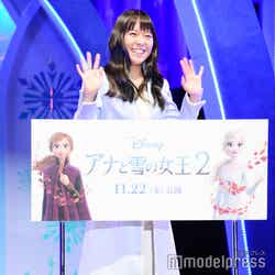 日本中に“Let It Go”の歌声があふれ、世代を超えた社会現象を巻き起こした『アナと雪の女王』。この日、『アナと雪の女王2』エンドソングの邦題が「イントゥ・ジ・アンノウン~心のままに」に決定したことも発表された。同曲は「Let It Go」の“その先”を歌った曲で、自分の力と向き合い未知なる世界へ踏み出そうとするエルサの思いを描いている。今回の起用でメジャーデビューが決まった中元。これから女性ソロアーティストとして未知の世界に飛び込むことになるが「この曲に共感するし、勇気をもらえた。第一歩踏み出せた」とにっこり。その楽曲を報道陣の前で生披露した。
