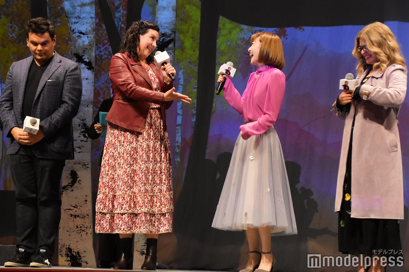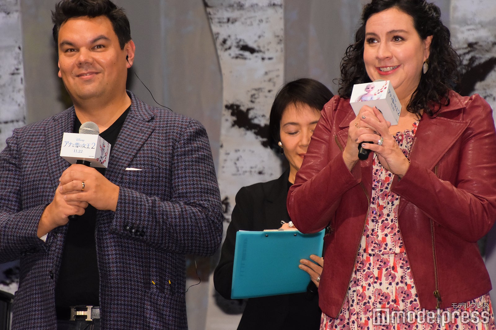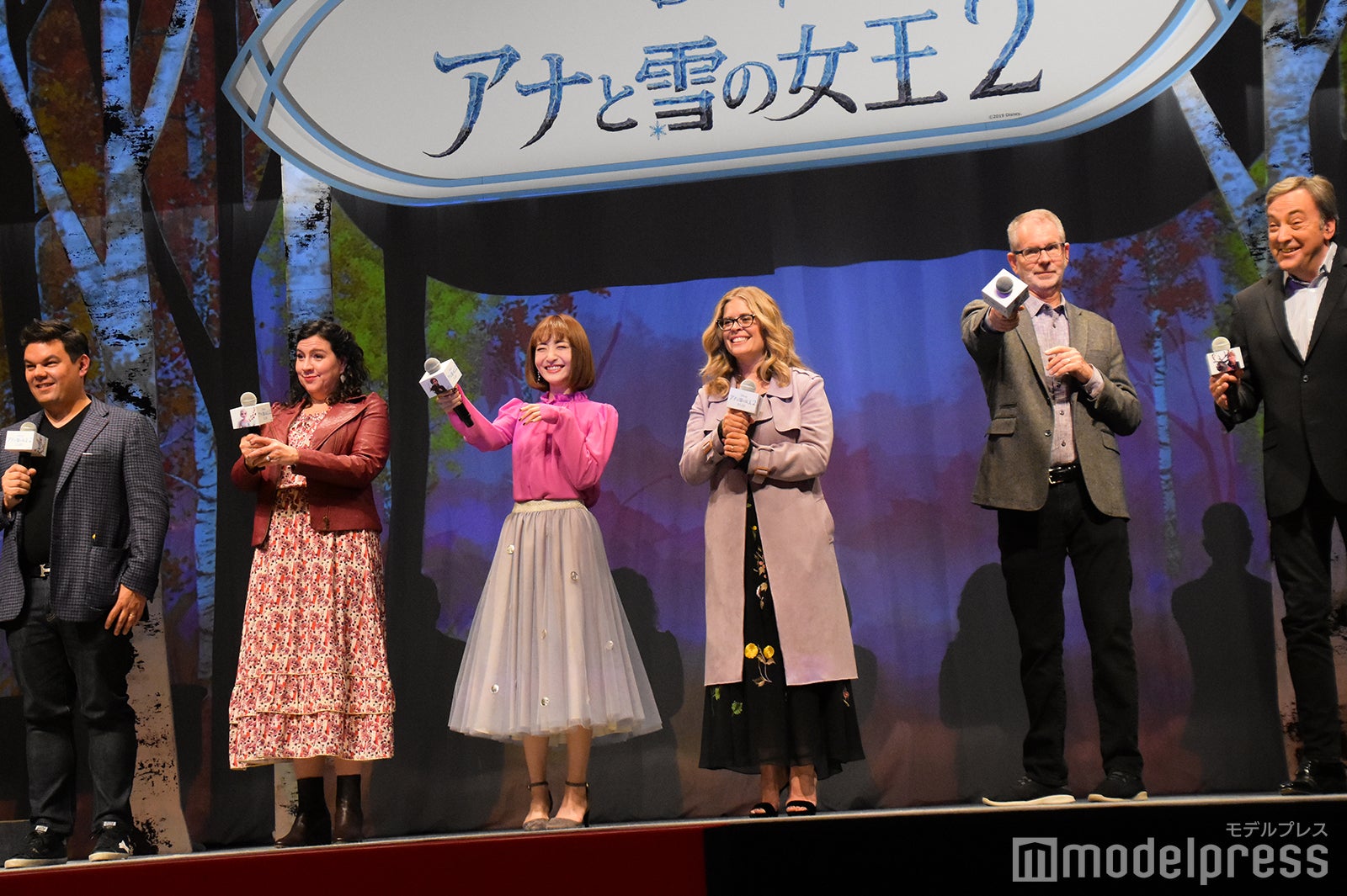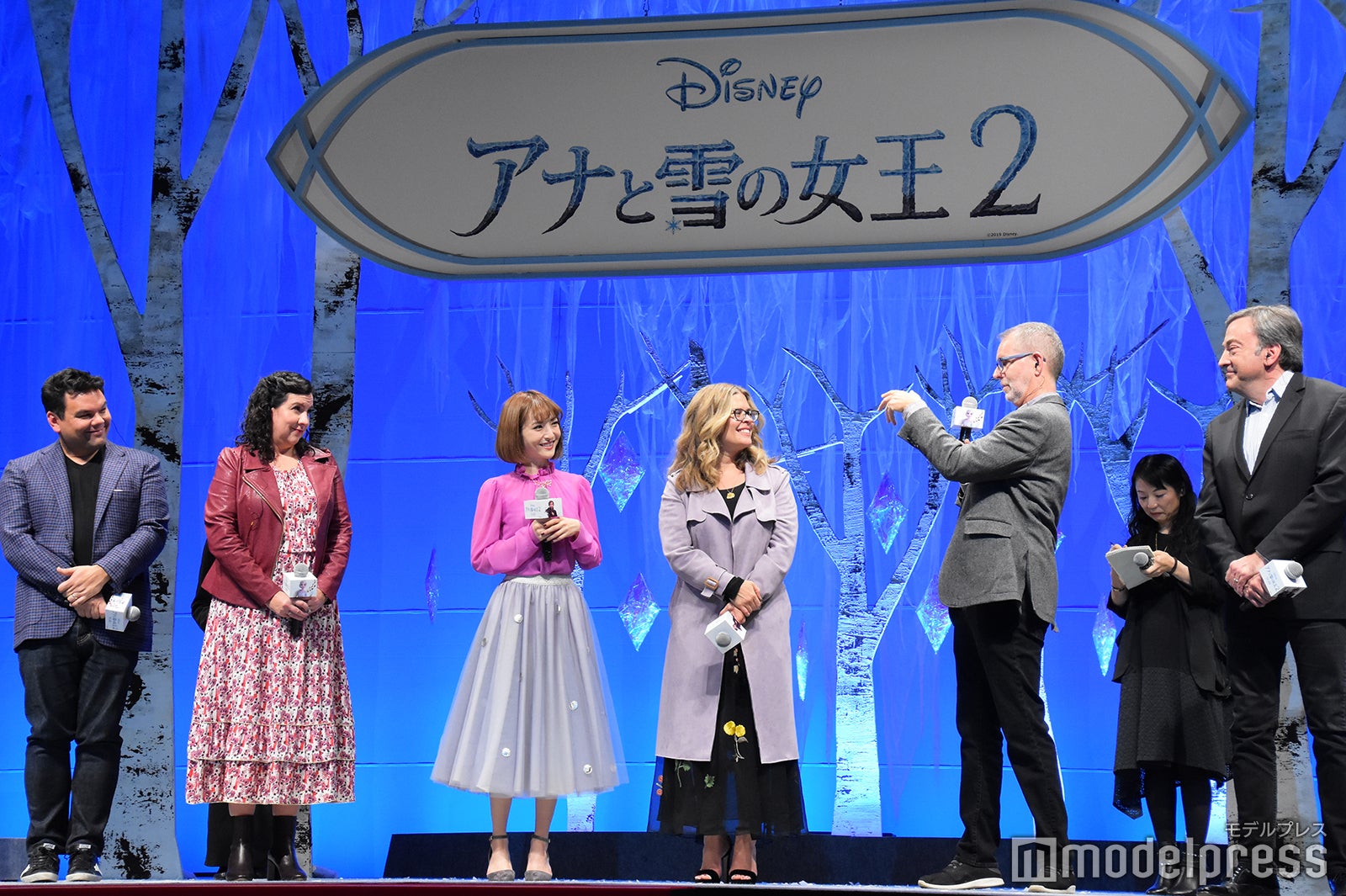 イベントには、同映画の監督のクリス・バック、ジェニファー・リー、プロデューサーのピーター・デル・ヴェッコ、同作の音楽を手掛けたロバート・ロペス、クリステン・アンダーソン=ロペス夫妻も登場。神田とは前作のプロモーション以来、久しぶりの再会となった。神田は、ジェニファー監督と顔を見合せるとハグ。そして手を顔に覆い、感涙した。「いつも目を見て監督とお話していると、涙が出てくる…。人生の宝物をいただいた」と話すと、ジェニファー監督も「神田さんが2でもまた戻ってきてくれて、同じ愛と優雅さと美しさをもって演じていただいた。ありがとう」と感謝を伝えた。