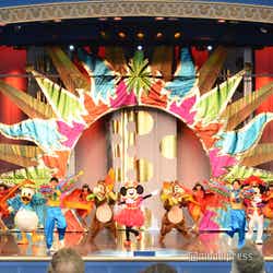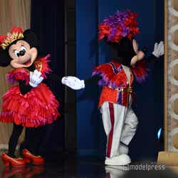 ショーベースで公演される「イッツ・ベリー・ミニー!」は、ミニーマウスをはじめとするディズニーの仲間たちが繰り広げるレビューショー。ラテンやロマンス、クラブなどのシーンに合わせ、これまでパークを彩ってきたエンターテイメントの音楽やコスチュームとともに、さまざまなスタイルを披露。
