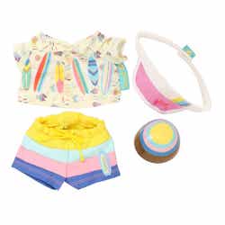 スペシャルグッズは、夏を楽しむダッフィー&フレンズを表現したグッズに加え、夏のさまざまなシーンで使用できるグッズなど、約35種類販売。アロハシャツやムームーをイメージしたぬいぐるみコスチュームや、浮き輪で遊んでいる水着姿のダッフィーたちのぬいぐるみストラップは、夏らしくかわいらしいデザイン。