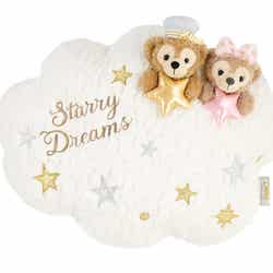 雲の形がデザインされたクッションやきらきらとした星がポイントのガーランドで部屋を飾りつければ、ダッフィーたちと一緒に星空を旅しているような気分になり、ダッフィーたちの顔のアイコンと星が散りばめられたパジャマワンピースを着れば、より一層ムードを高めてくれる。