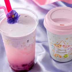 パーク初登場となるシリコーンゴム製のふたが付いたスーベニアタンブラーは、ステラ・ルーをイメージした、ラズベリーゼリーとブルーベリーチーズクリーム入りの甘酸っぱいドリンクとセットで。