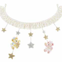 ダッフィー&フレンズが一緒に星空で楽しんでいる様子を表現したグッズや、パークだけでなく自宅でもダッフィーたちと一緒にきらきらとした星空を楽しめるような、ホームプラネタリウム・ガーランドなどのアイテムを約30種類販売。ぬいぐるみコスチュームは、星の形をした望遠鏡やポシェットなどのアイテムを持たせられるようになっており、ぬいぐるみコスチュームやぬいぐるみバッジは、星がたくさんあしらわれたデザインに。