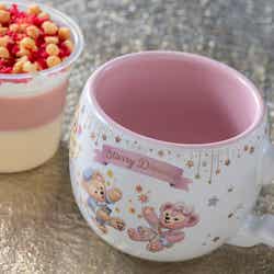 ふわふわとした雲をイメージしたデザインのスーベニアプレートやスーべニアカップは、星形のトッピングチョコが上にのったピーチ・バニラムースケーキや、ザクザクとしたキャラメルビスケットの食感がアクセントのストロベリー&ホワイトチョコムースとセットで楽しめる。(modelpress編集部)