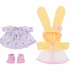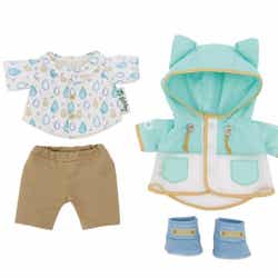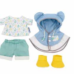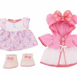 レインウェアを着て出かけたり、虹を見つけたりと雨の日を楽しく過ごすダッフィー&フレンズを表現したグッズが登場。Sサイズのぬいぐるみに着せて楽しむことのできるぬいぐるみコスチュームは、ダッフィーたちの耳まですっぽりと被せることができるデザインのレインウェアと長靴がセットに。ぬいぐるみストラップは、クッキー・アンとオル・メルも長靴をはいて傘を手に持ち、6人で登場する。