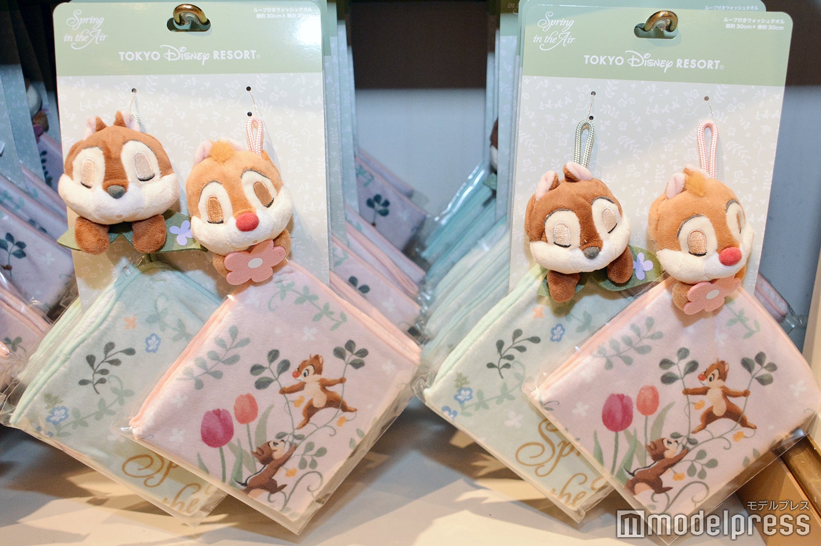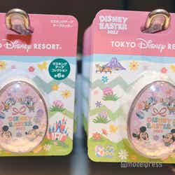 たまごの殻をかぶったキュートなチップとデールのキーチェーンセットや、裏地のかわいさにまでこだわったマチ付きのトートバッグ、パークで身につけたくなるシャツやイヤリング 、マスク&タオルポーチなど、春らしいパステルトーンを取り入れたグッズの数々が揃う。