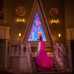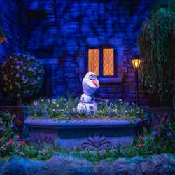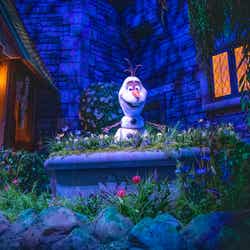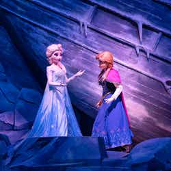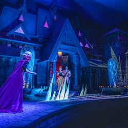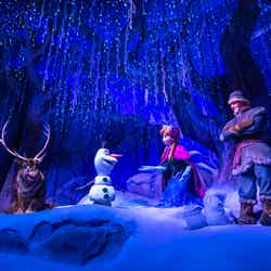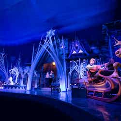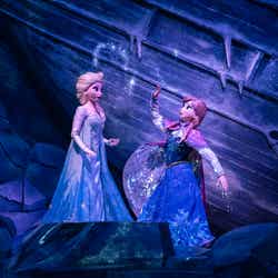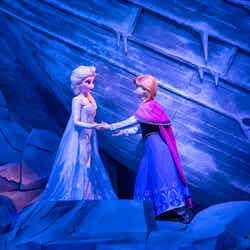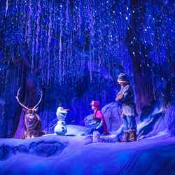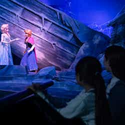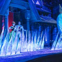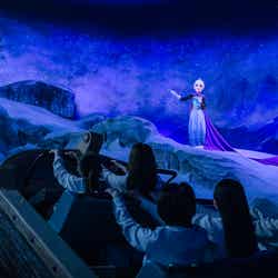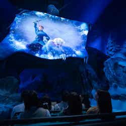 「フローズンキングダム」は、雪や氷を操る魔法の力を隠し続けてきたエルサがその力をありのままに受け入れ、「真実の愛」で魔法を自由に操ることができるようになった、ディズニー映画「アナと雪の女王」が幕を閉じた後の幸せな世界。映画のストーリーをたどるアトラクション「アナとエルサのフローズンジャーニー」や、アレンデール城の中にある約570席のレストラン「アレンデール・ロイヤルバンケット」、映画に登場するサウナ付きの山小屋の主人オーケンが経営する陽気な小規模フード店舗「オーケンのオーケーフード」など、ゲストは暖かさを取り戻し祝福ムードに包まれたアレンデール王国を訪れることができる。「アナとエルサのフローズンジャーニー」は、ボートに乗って、ディズニー映画「アナと雪の女王」の物語を追体験し、冒険と「真実の愛」がおりなす壮大かつ心温まる姉妹の物語を楽しむことができる水流ライドタイプのアトラクション。ノルウェーの伝統的な装飾フォークアートであるローズマリングで彩られたボートは前や後ろへとさまざまな動きで進み、前向きで3回、後ろ向きで3回落下があるなどちょっとしたスリルも。アナやエルサ、オラフの表情や動きも滑らかで、プロジェクションマッピングも圧倒的。「生まれてはじめて」や「レット・イット・ゴー~ありのままで~」などの映画の名曲がワクワク感を高め、魅力的な世界を完璧な没入感とともに鮮やかに体験できる。