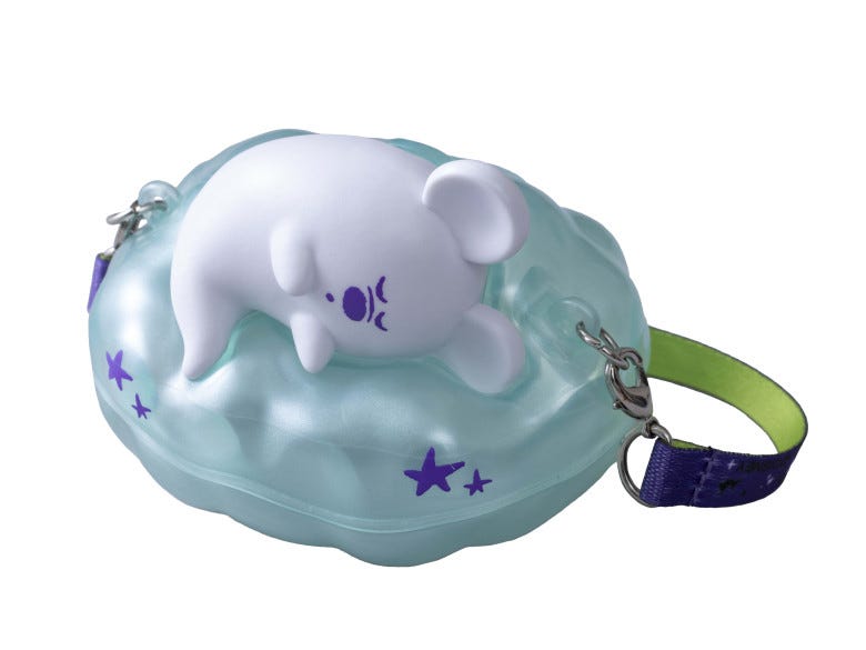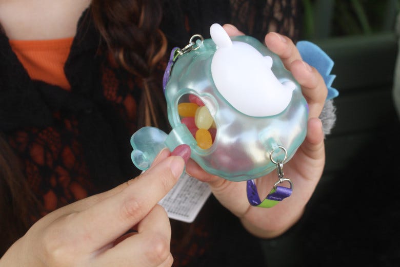 雲の上で寝ているゴーストがデザインされたミニスナックケース。半透明のケースに包まれたグミが透けて見える、可愛さ満点のデザインです。