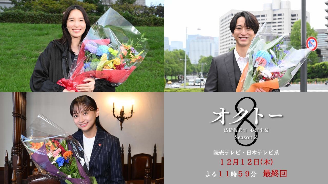 女優の飯豊まりえ主演の読売テレビ・日本テレビ系プラチナイト新木曜ドラマ「オクトー ~感情捜査官 心野朱梨~Season2」(毎週木曜よる11時59分~)の最終回が、12月12日に放送。最終回を前にキャスト陣がクランクアップを迎えた。
