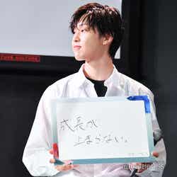 この日、キャストはそれぞれの役衣装で登場。絶望の淵にいた高校2年生の主人公・黒瀬令児を演じる荒木は、もともと原作ファンだったそうで、「初主演で大好きな黒瀬令児をやらせていただいて、本当に幸せだったというのがまず第一にあって」と感激の思いを吐露。「今まで感じたことのないくらい緊張とプレッシャーを感じて『ドラマ入れるのかな』みたいな不安がすごいあったんですけど、いざ現場に入ったら、本当に皆さん優しくて明るい現場で。あっという間に撮影が終わっていて、本当に幸せな時間でした」と振り返った。令児をパシリにしている峰岸玄役の堀は「こんなにも可愛い飛羽くんをパシリに使って本当に胸が痛かったんですけど(笑)」とこぼしつつ、「原作もしっかり読ませていただいてすごい印象に残るキャラクターでしたし、僕がこうして演じさせていただけるのはすごくありがたいなと思いながらしっかり準備して、撮影させていただきました」と明かした。