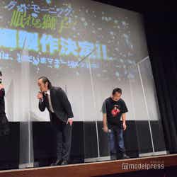 この日は、続編の制作が決定したことが発表された。高岩は「続編で主演をやらせていただくことになりました。パワーアップすると監督も塚田プロデューサーもおっしゃっていましたので頑張ります!」と意気込み。しかし、高岩と坂本監督が続投することしか決まっていないため、渡邉は「えっ?わたし降板ですか?」と目を丸くし、「暴れますよ!」とプレッシャーをかけて会場を笑いに包んだ。しかし、塚田プロデューサーから「また出ていただけるようにマネージメントさせていただきます」と伝えられると、渡邉は「本当ですね」と安堵し、「どこかしらに(出番を)お願いします。確約を!」と熱烈に呼びかけていた。(modelpress編集部)
