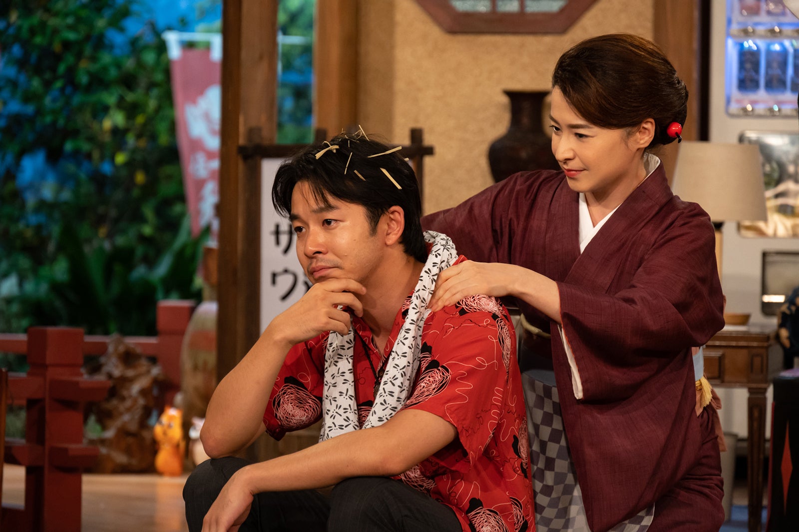 本作は、主演・仲野×金子茂樹(脚本)×深川栄洋(監督)という俊英が集結し、さびれた温泉旅館『虹の屋』の玄関とロビー、従業員室・大浴場の入口とエレベーターのみを舞台に放つ、限られた空間での30分間ノンストップの群像劇。斬新さとノスタルジーが共存した『虹の屋』の本格セットを舞台に、実際に観客を入れてその目の前で“ほぼ本番一発勝負”の演技を続けていくという、他に類を見ないドラマ版ファーストテイクとも呼べる新感覚ドラマ。SNSでも『新しい!』『出演者のレベルの高さがわかるドラマ』『ノンストップで爽快!!』とハマる人が続出だが、すでに話題の菅田ゲスト回がついに放送を迎え、その全貌が明らかになる。