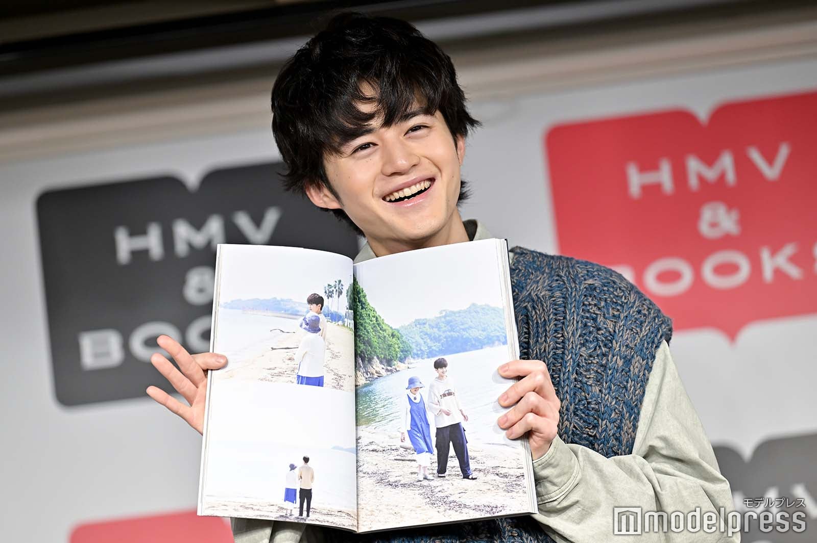 「omen-前兆-」は自身初めてとなる写真集で、2019年デビュー直後から現在までの約3年間の軌跡を掲載したもの。写真集イベントは大阪・名古屋でも行われ、ファンから「デビューから見ていました」「『ドラゴン桜』から応援しています」などの言葉をもらったと報告し、「そう言ってくれる人に写真集を届けられたことがすごく嬉しいです。感動した。いつ発売できるかなって思っていたけど、このタイミングで発売できて嬉しい」とリリースを喜んだ。お気に入りは、地元・岡山の浜辺を祖母と歩いている微笑ましいショット。身内との撮影とあって「この写真集の中でも1番気が抜けている(笑)。地元に帰っておばあちゃんに会っているそのままの姿が映っている。1番オフの瞬間ですね。家族で写真を撮る時間なかったので、新鮮。幸せな時間でした」と振り返った。