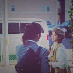 翡翠と刑事のやりとりを校舎の陰で聞いている絵里(星野真里)。慌てて絵里が去っていく。去っていく絵里を見遣り、これでいいの?という表情で、翡翠に向かって肩を竦める岩戸。敢えて聞こえるボリュームで会話をし、絵里がデジカメを探すよう誘導していた。「invert 城塚翡翠 倒叙集」第4話:翡翠と岩戸のメッセージのやりとり