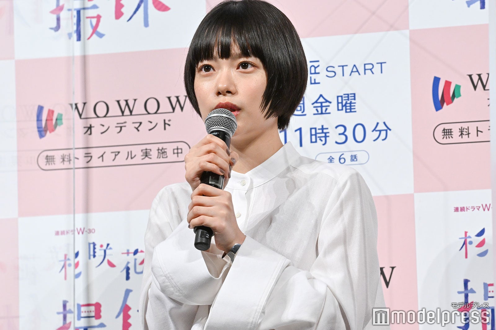 女優の杉咲花が9日、都内で行われた10日配信・放送スタートの連続ドラマW-30「杉咲花の撮休」(WOWOW/毎週金曜よる11時30分~全6話)の完成披露試写会に、松居大悟監督、今泉力哉監督、三宅唱監督とともに出席。杉咲が、監督陣から絶賛された。