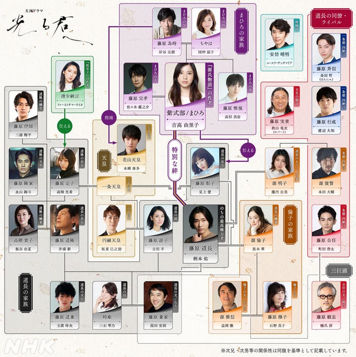 高畑充希・三浦翔平ら、吉高由里子主演大河ドラマ「光る君へ」新たな出演者発表<相関図>