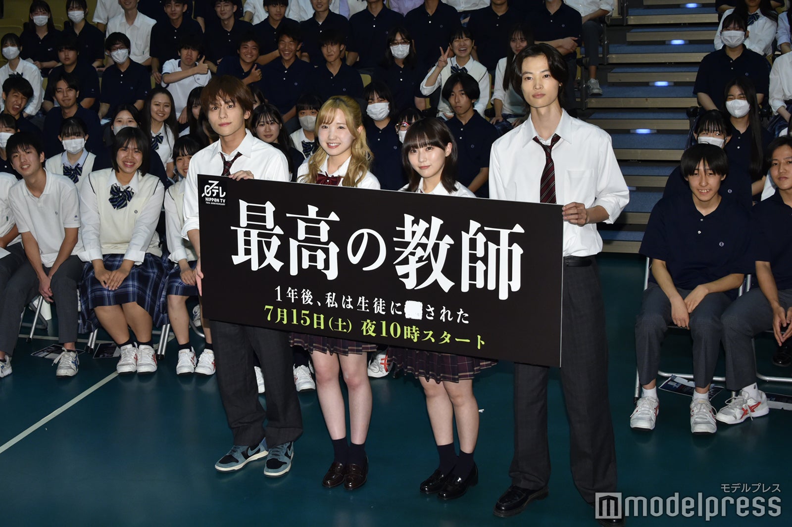 AKB48の本田仁美とHKT48の田中美久が7日に都内の高校で行われた日本テレビ系新土曜ドラマ『最高の教師 1年後、私は生徒に■された』(7月15日スタート/毎週土曜よる10時~)の試写会&取材会イベントに俳優でモデルの窪塚愛流、俳優の山下幸輝とともに出席。高校時代やっておきたかったことを明かした。