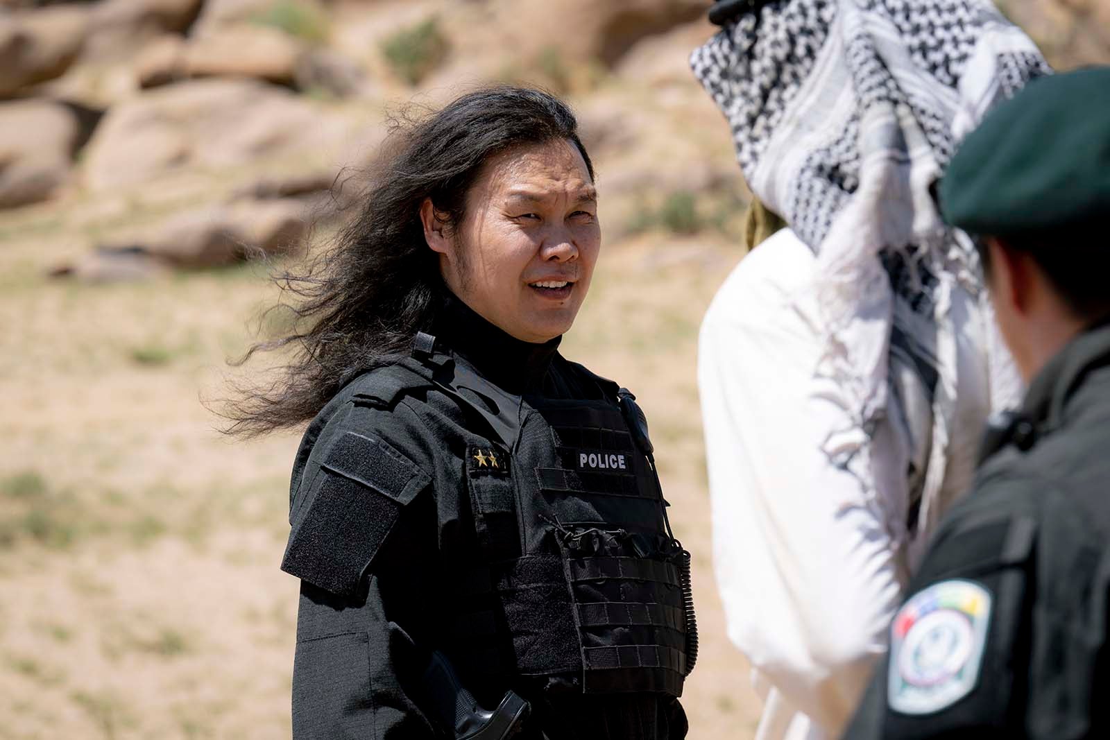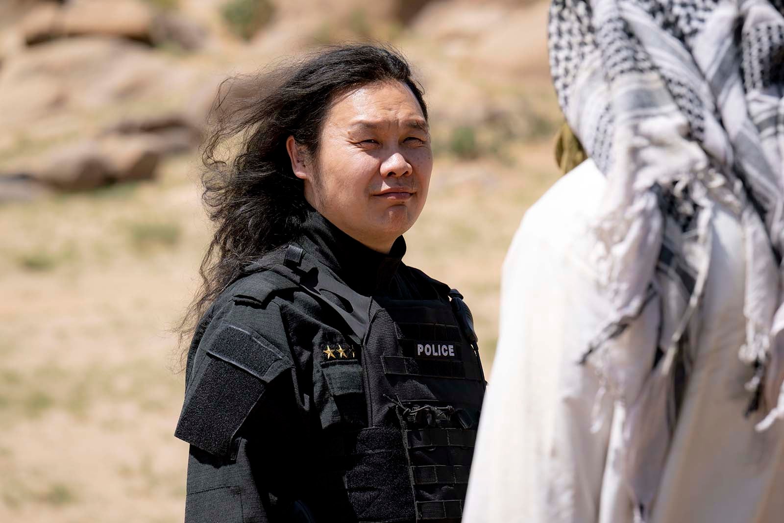 バルサー:福澤監督とは、「このシーンではこうしよう」など、たくさんお話をしました。当初、監督から「長い髪はそのままで演じてください」と言われたんです。私は警察なのに髪が長いのはどうかなと思ったので、それを話したら、監督は「チンギスは他の警官とは違う特別な存在だから問題ないし、長髪の方が恐ろしさが出る」と言ったんです。スキンヘッド案も出たりしましたが、次に出演する作品も決まっていたので、今のような形になりました。