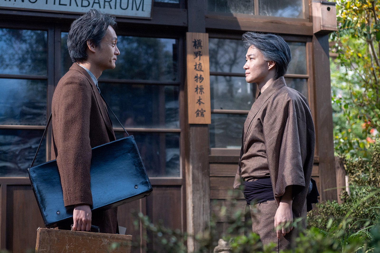 主人公・万太郎(神木)の図鑑作りを手伝うために駆り出された丈之助は、「なんで?なんで俺まで?シェイクスピア全集届けに来たのに、むしろ祝われに来たのに」と不服な様子ではあったが、久々の再会となった万太郎の旧友・波多野(前原滉)と藤丸(前原瑞樹)と会話を弾ませる。採集されたたたくさんの植物が置かれている万太郎の仕事部屋を見回した丈之助は、「俺も作りたいな、演劇の博物館」と一言。「この植物たちと一緒、消えてなくなるものだから。演劇はもともと演じるものと観るもの、人間の間にしか存在しない幻なんだよ。だったらせめてできる限りのものを後の世に贈りたいなぁって」と語ると、莫大な資金と場所については「早稲田に頼むしかないかな~」と続けた。