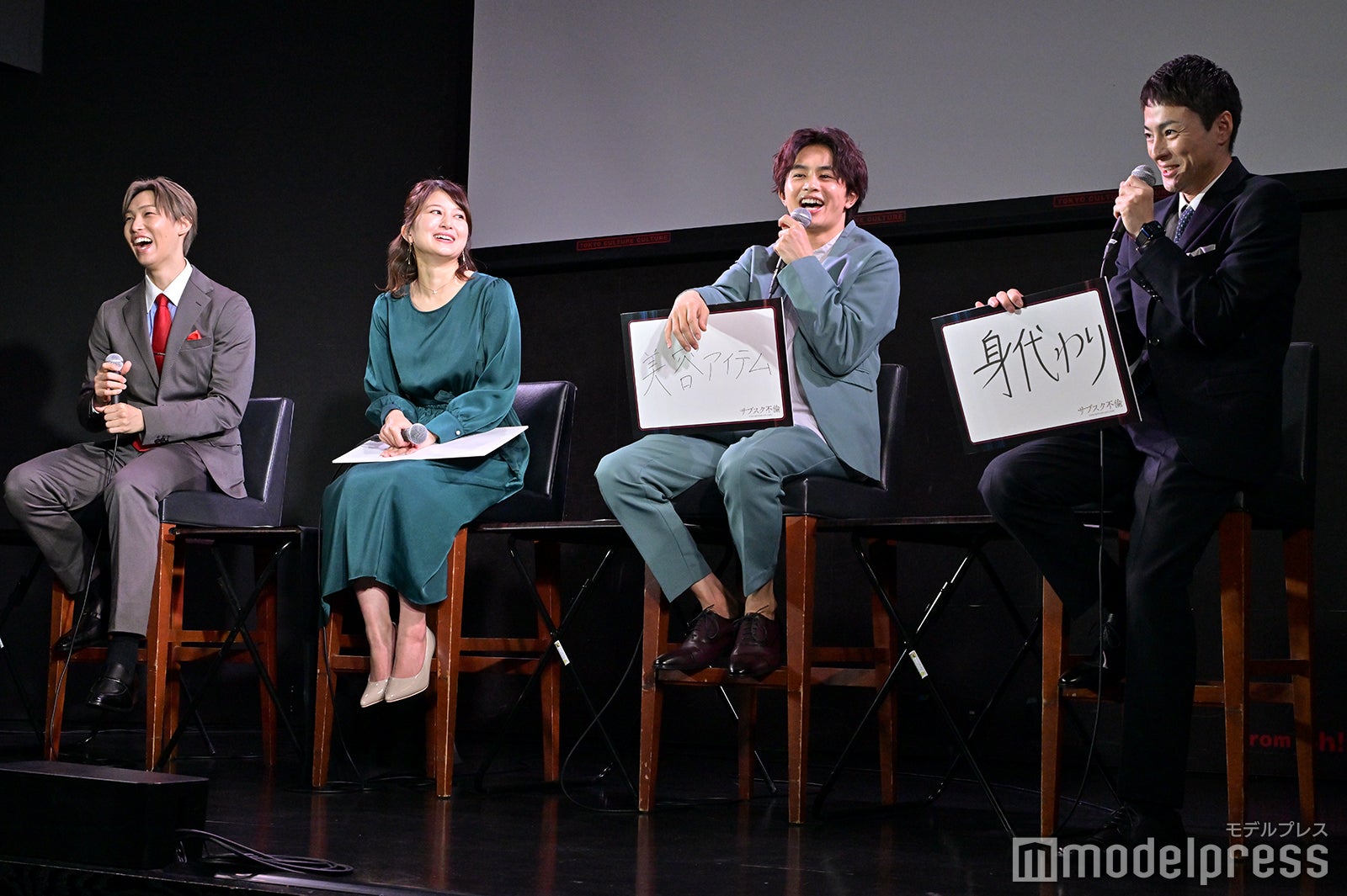内容にかけて「沼にハマっているもの」をそれぞれが発表するトークコーナーが展開された。堀はフリップに「芋沼」と書き、端っこにはサツマイモの直筆イラストも。「可愛くない?」と共演者に訪ね、会場の笑いを誘った。「サツマイモが好きで、佐津川さんと現場で芋の話しをしていた。干し芋もよく買っている。ドラマ撮影日は2人で焼き芋もはんぶんこしました」と話すと、佐津川が「私が買ってきた焼き芋もはんぶんこした。けど、その焼き芋が私的にあまり美味しくなかった。『あまり美味しくないかも』って言ったら、なっちゃんが食べて『美味しい。昔ながらの素朴な味がするね』って言っていた。そういう変換の仕方が、愛されポイント」と気遣いに感謝を伝えた。また、現場では、堀がイジられキャラだった様子で、木村が「自宅のシーンでの控え室が狭かった。部屋の中に3人にいないといけなくて、そんな中でなっちゃん(堀)が何度も部屋から出ようとする。『居なよ』と言っても気付くとちょっとずつドアのほうに向かっていた(笑)」と暴露。佐津川も「なっちゃんのこともっと知りたいって言っていたよね。監督も『なっちゃんが日本の未来についてどう思っているのか気になる』って言っていた(笑)」と明かすと、4人とも大笑いだった。