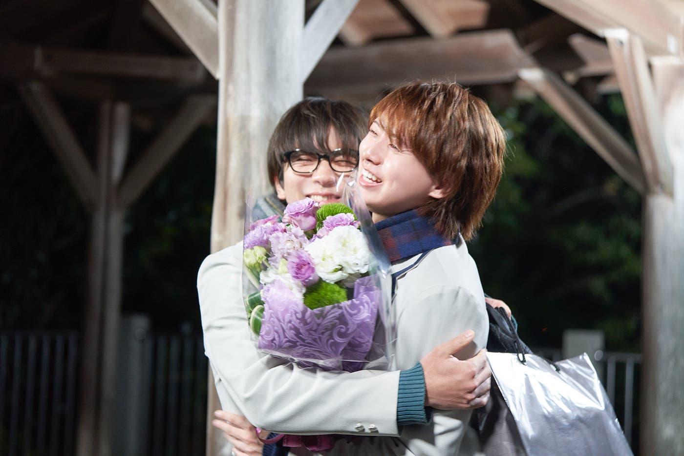 そして、謎多きイケメン高校生に始まり、最終的には林太郎とうみの1番の理解者となる小野寺いつきを演じた井上のクランクアップの際には、もちろん高橋から花束が渡された。「ありがとう!ありがとう!」とハグ&頭をポンポンしながらじゃれ合う2人の様子を見て、キャスト・スタッフ一同笑顔に。